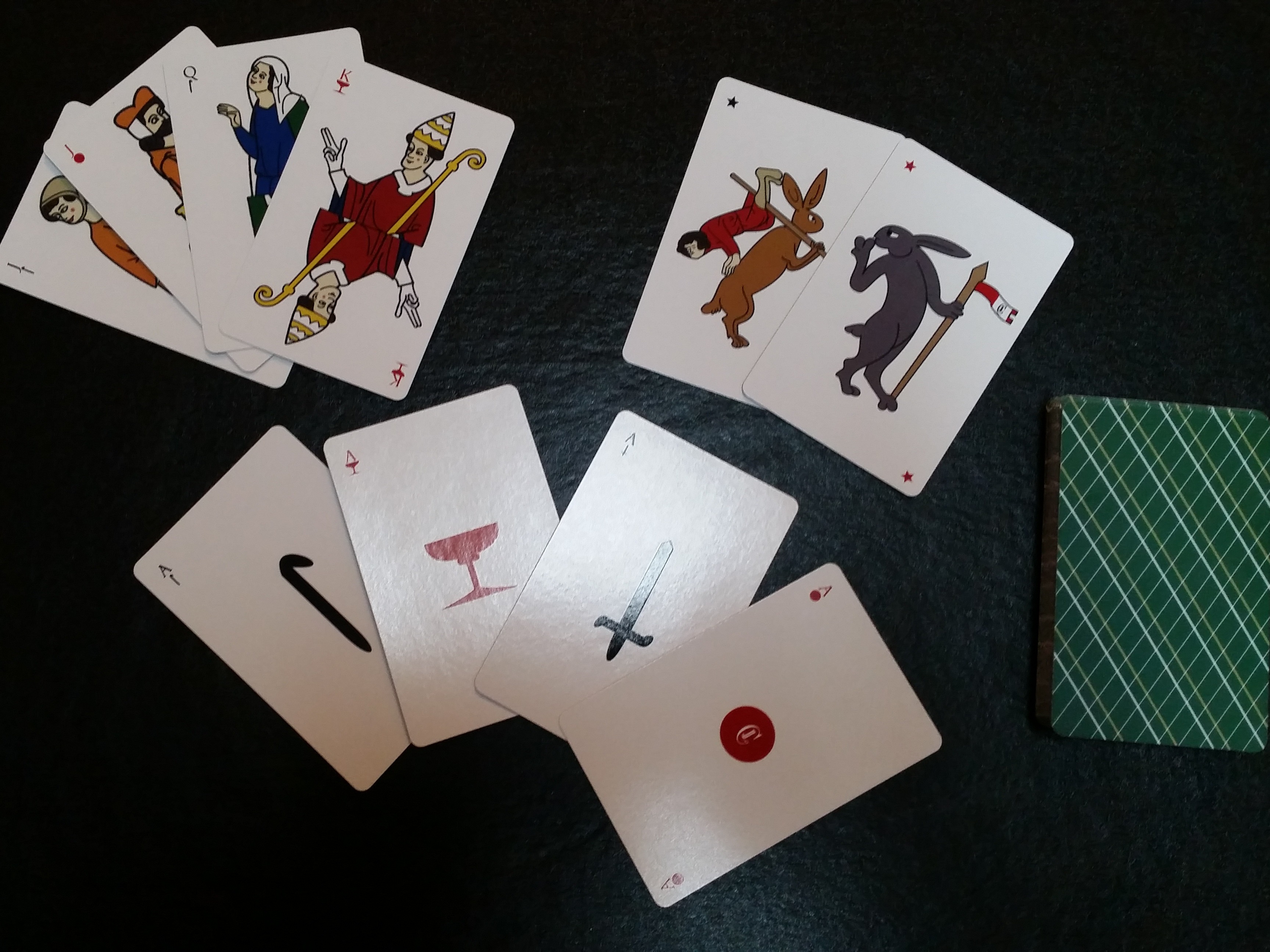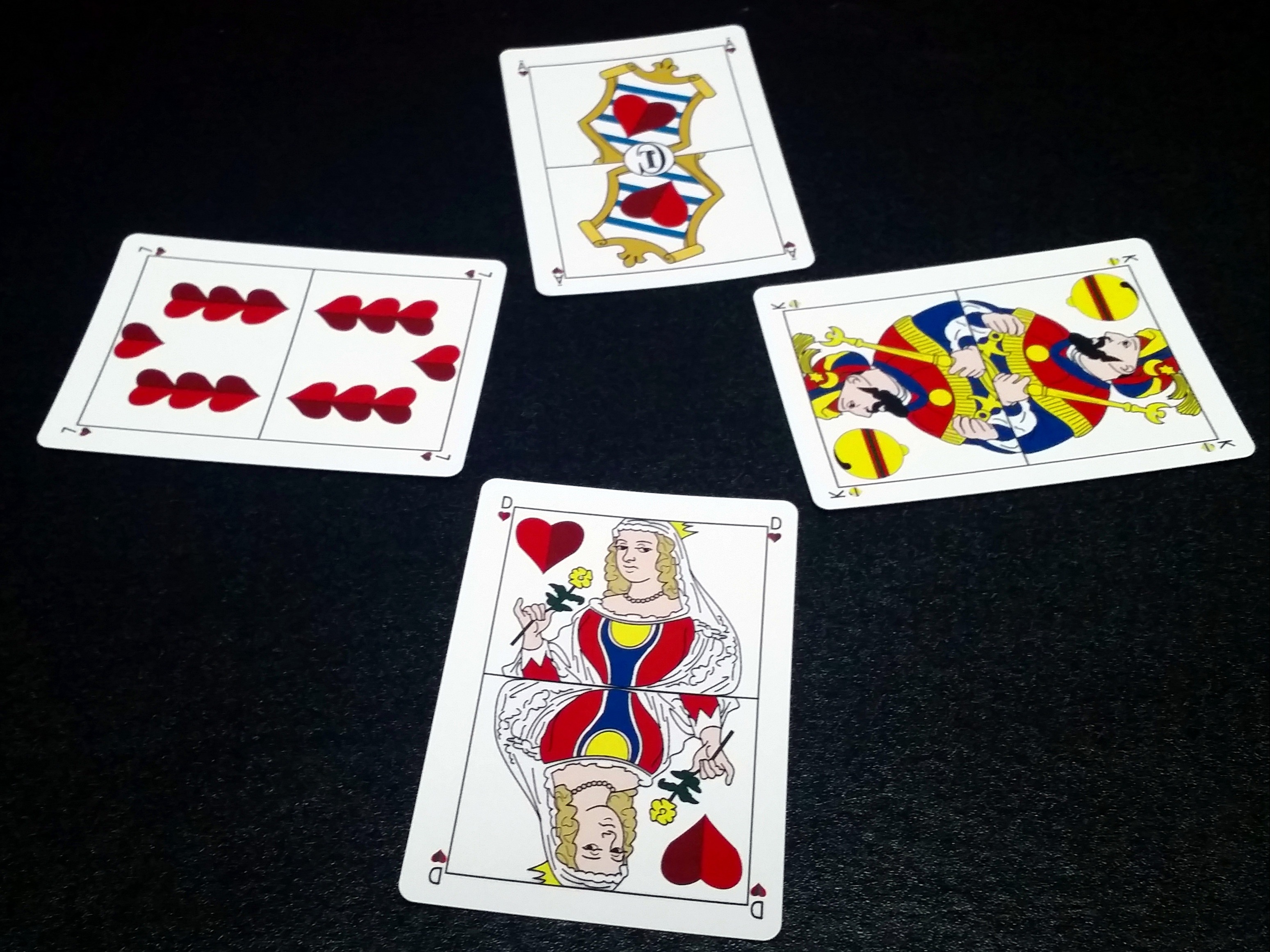A historical card game popular from the 16th to the 20th century in central Europe. It uses a special deck featuring Italian suits and highly decorated aces and deuces. This deck is based on a historical deck from Anton Herrl.
