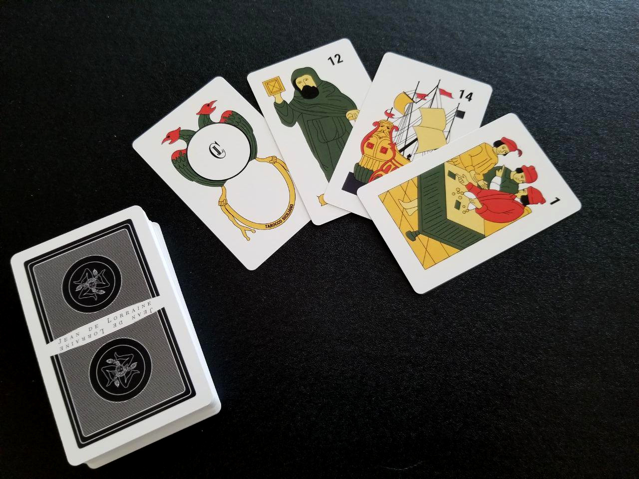 The traditional Italian tarot deck from the island of Sicily. This deck has many unique features which set it apart from peninsular Italian decks including female knaves.